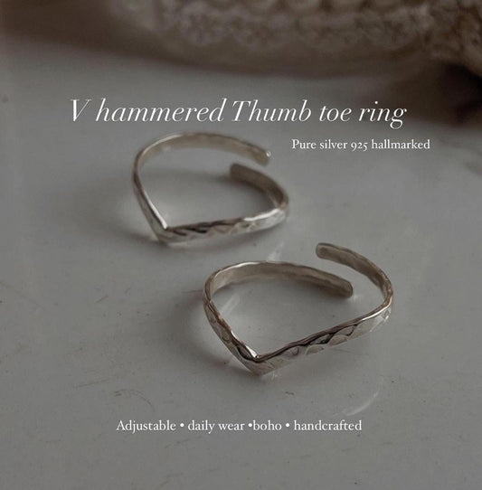 925 Sterling Silver V Hammered Thumb Pure Big Toe Ring