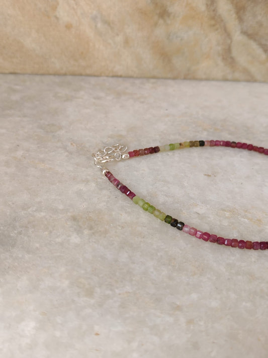 Multi Tourmaline 2mm Light 925 Sterling Silver Anklet