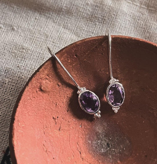 Amethyst Boho Hook 925 Sterling Silver Earrings