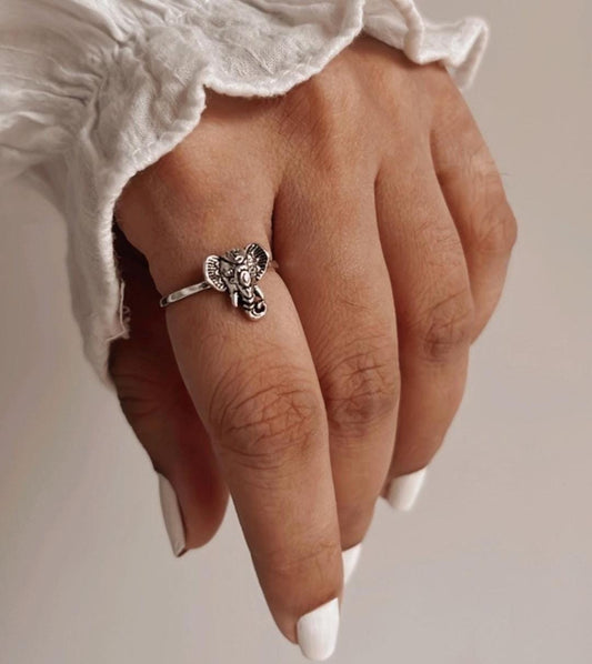 925 Sterling Silver Boho Hathi / Elephant For Luck Ring