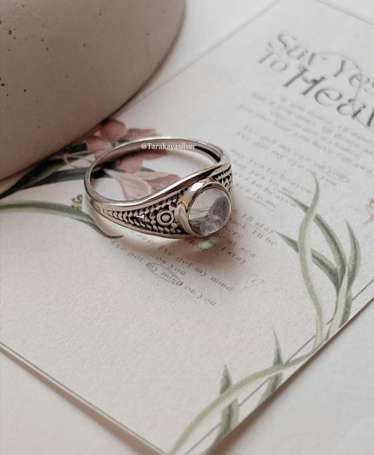 925 sterling silver Clear Quartz Master Healer Round Boho Ring
