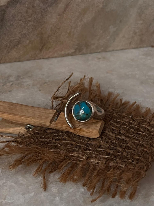925 Sterling Silver Copper Turquoise Moon Adjustable Ring
