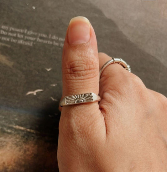 925 Sterling Silver Sunshine / Sun Engraved Signet Unisex Ring