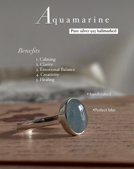 925 Sterling Silver Natural Aquamarine Natural Oval Ring