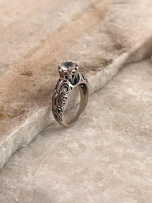 925 Sterling Silver Vintage Motif Moonstone Solitaire Statement Ring