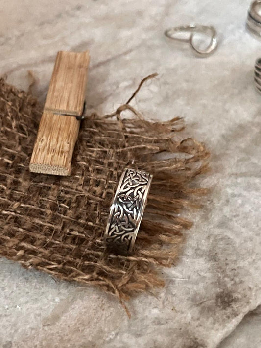 925 Sterling Silver Thick Trinity Boho Celtic Knot Band Ring