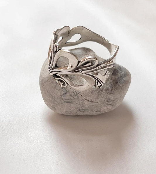 Detailed Garden Motif Boho Adjustable 925 Sterling Silver Ring