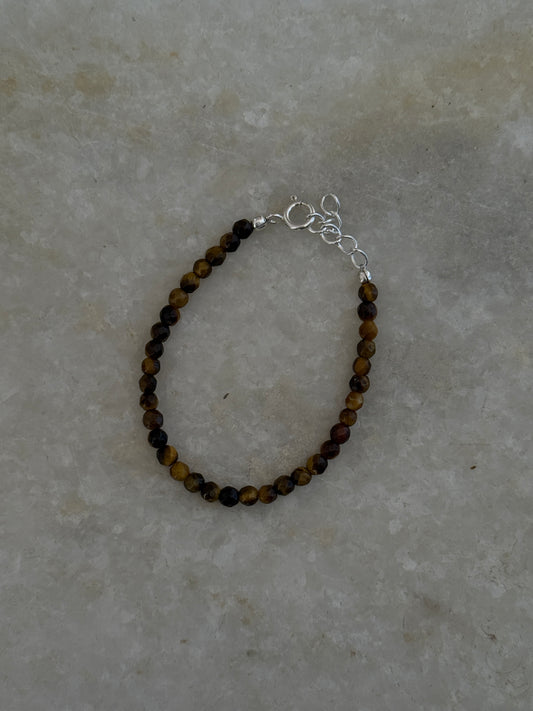 Tigers Eye 4-5mm Faceted Natural Crystal 925 Sterling Silver Bracelet