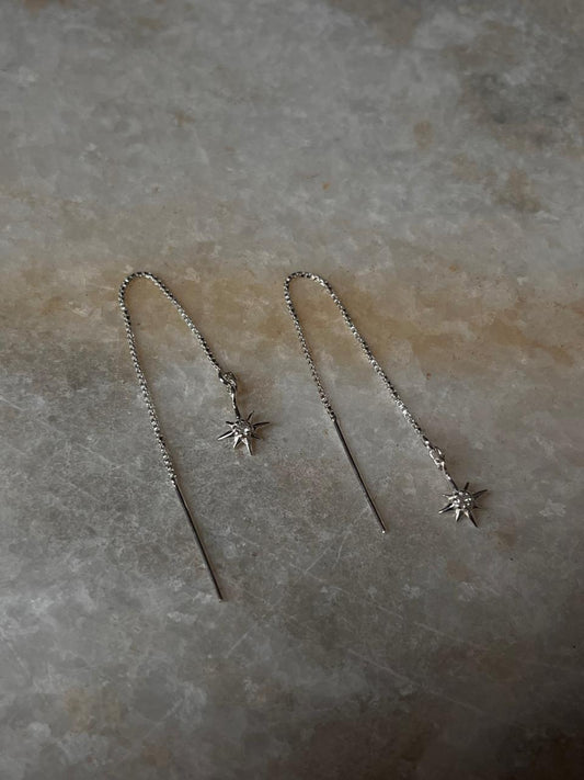 White Topaz North Star Threader/Sui Dhaga 925 Sterling Silver Earrings