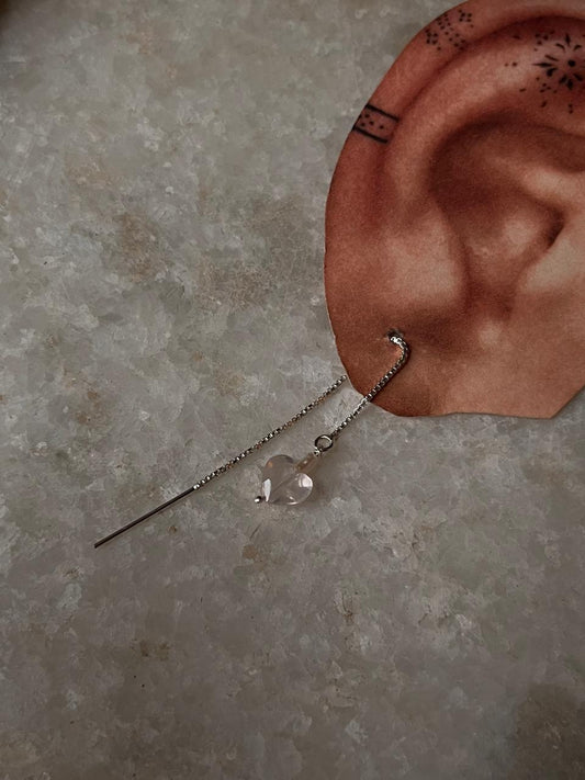 Rose Quartz Heart & Pearl Threader/Sui Dhaga 925 Sterling Silver Earrings