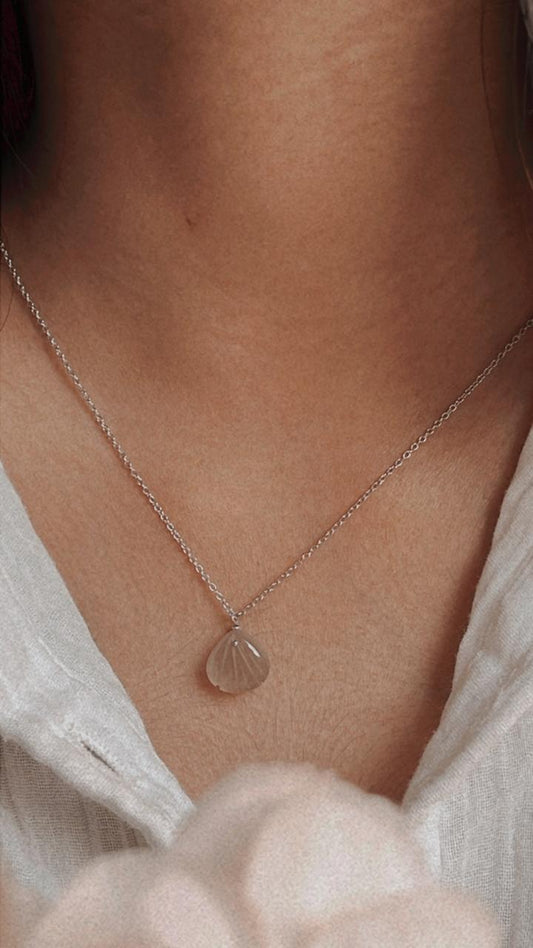 Grey Moonstone Shell Crystal 925 Sterling Silver Necklace
