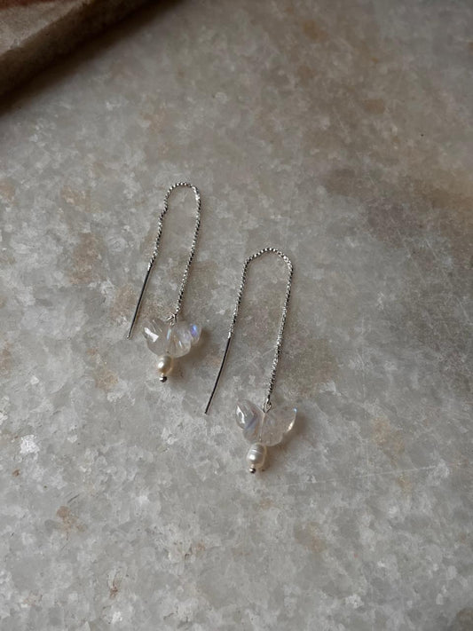 Rainbow Moonstone Butterfly & Pearls Threader/Sui Dhaga 925 Sterling Silver Earrings