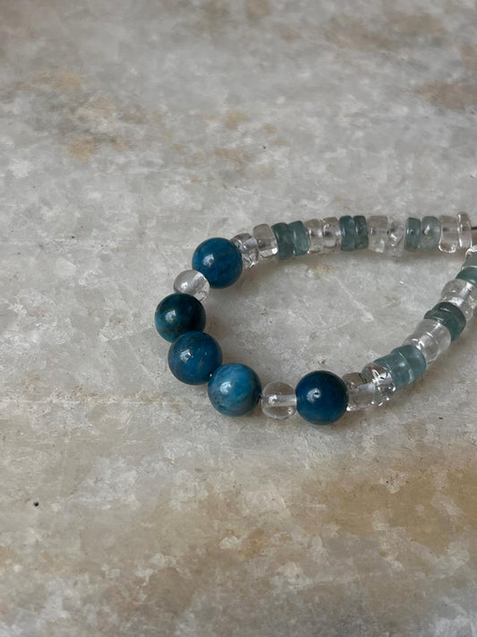 Apatite & Clear Quartz 925 Sterling Silver Bracelet