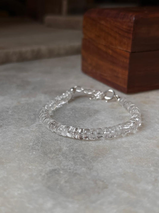 Clear Quartz Flat 4mm Crystal 925 Sterling Silver Bracelet