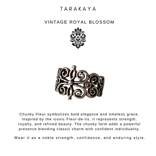 925 Sterling Silver Vintage Chunky Fleur Unisex Band Ring