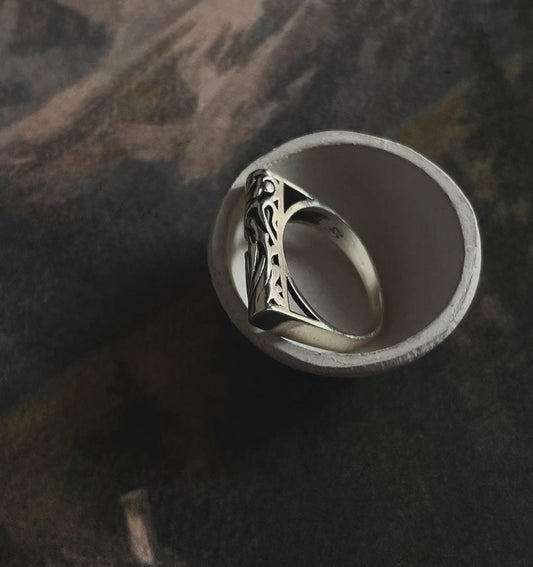 925 Sterling Silver Vintage Motif Boho Signet Ring