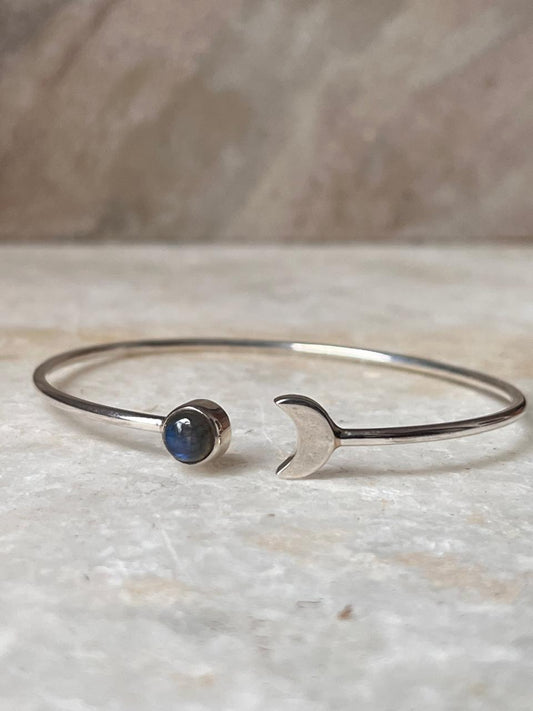 925 Sterling Silver Labradorite Crescent Moon Adjustable Kada