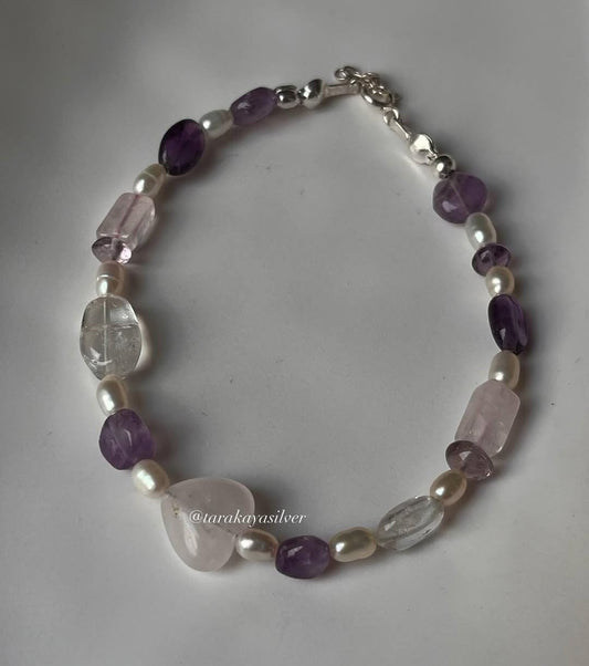 Master Healer- Rose quartz heart Handcrafted 925 Sterling Silver Bracelet