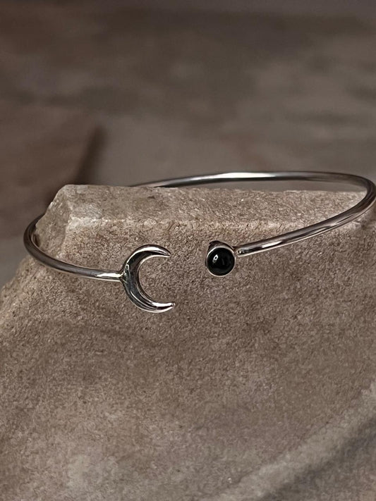 Black Onyx Crescent Moon Adjustable 925 Sterling Silver Kada
