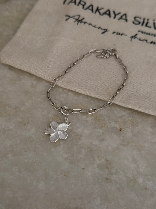 925 Sterling Silver Paper Clip Plumeria /Frangipani Flower Bracelet