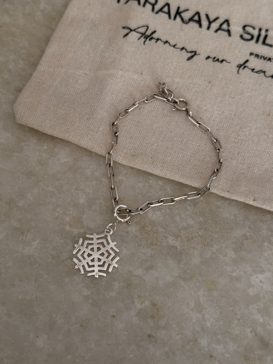 925 Sterling Silver Paper Clip with Snowflake Bracelet