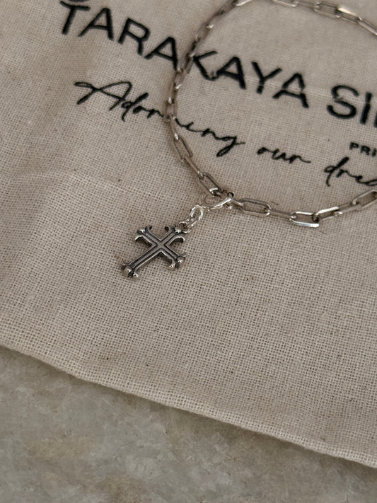 925 Sterling Silver Paper Clip with Vintage Italian Cross Bracelet