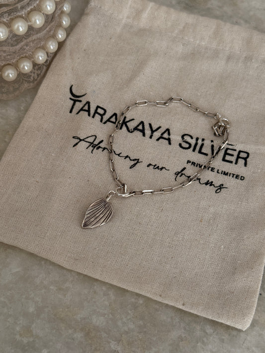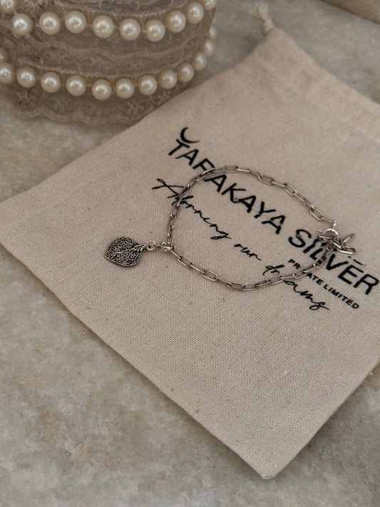 925 Sterling Silver Paper Clip with Big Leaf Charm Bracelet