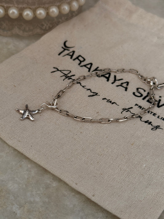 925 Sterling Silver Paper Clip with Starfish Bracelet