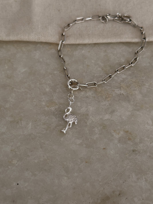 925 Sterling Silver Paper Clip with Flamingo Charm Bracelet