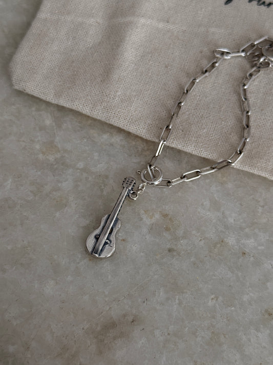 925 Sterling Silver Paper Clip with Guitar Bracelet