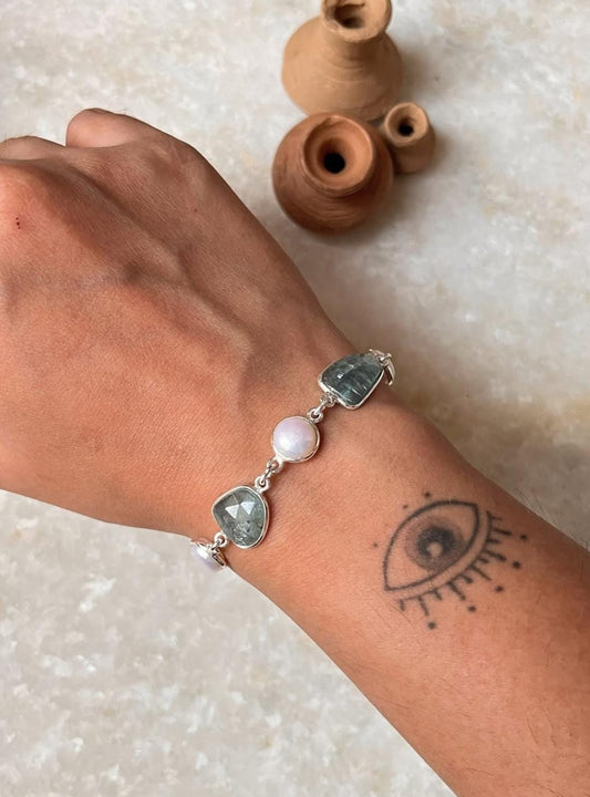 Kynite & Fresh Water Pearl 925 Sterling Silver Bracelet