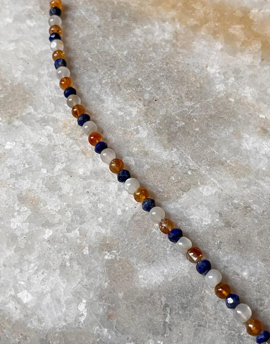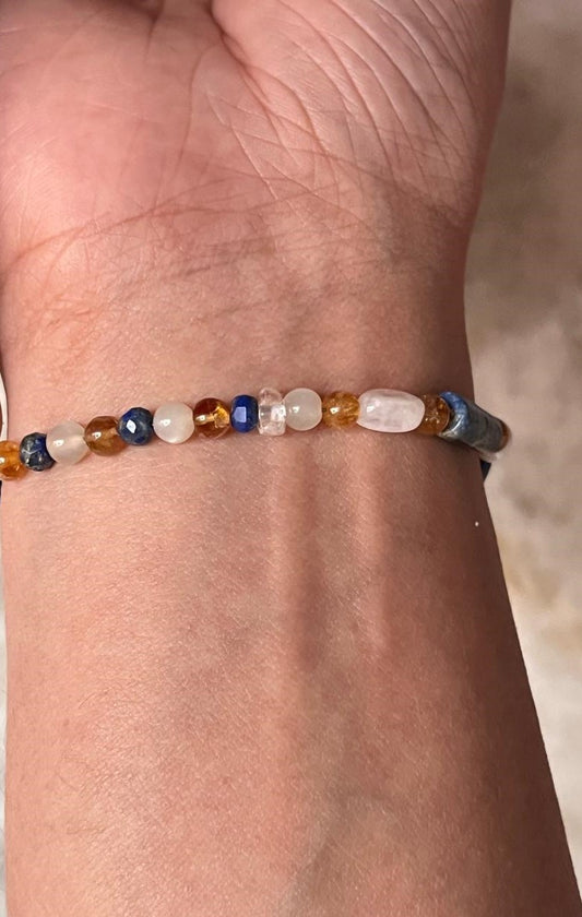 Lapis lazuli, Moonstone & Citrine 4mm Round Handcrafted 925 Sterling Silver Bracelet