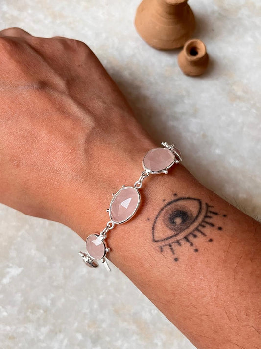 925 Sterling Silver Rose Quartz Rawa Boho Bracelet