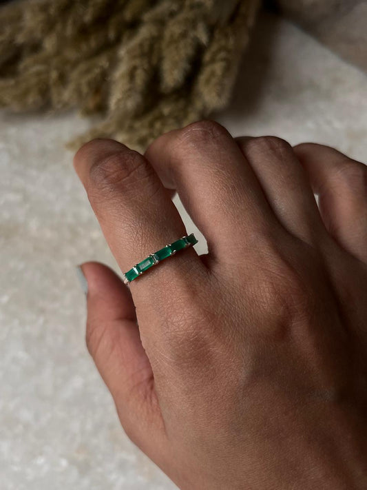Green Onyx Baguette Eternity Band 925 Sterling Silver Ring