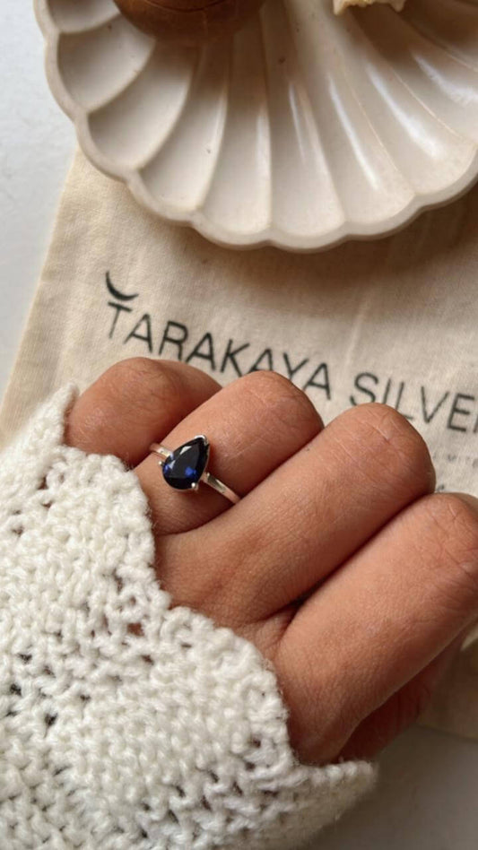 Iolite Solitaire Pear 925 Sterling Silver Ring