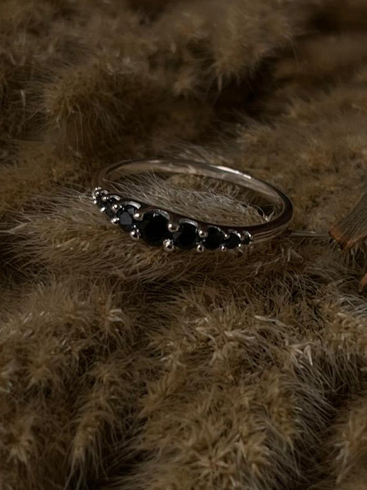 925 Sterling Silver Black Spinel 9 Gradient Ring