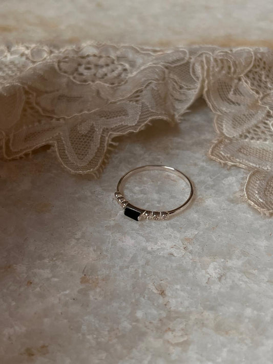 Black Spinel & White Topaz Twilight Stack 925 Sterling Silver Ring
