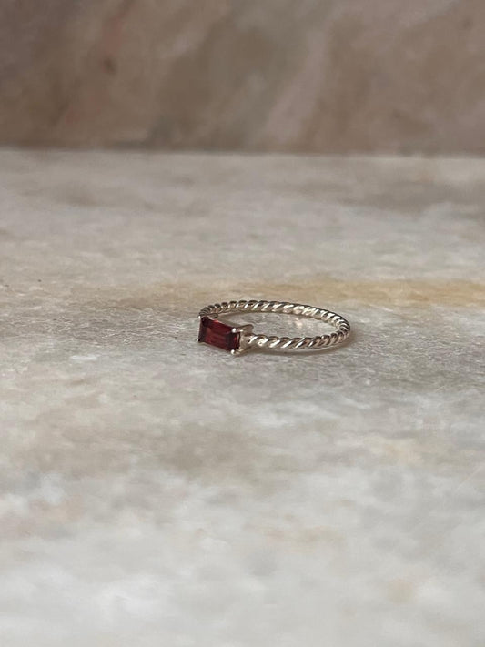 Garnet Baguette Cut Rope Band 925 Sterling Silver Ring