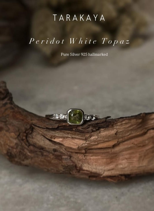 Peridot & White Topaz Band 925 Sterling Silver Ring