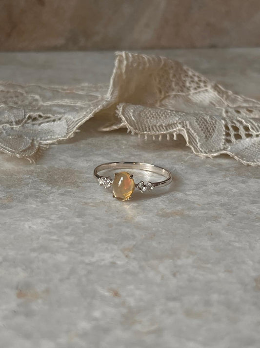 Natural Ethiopian Opal & White Topaz Solitare Band 925 Sterling Silver Ring