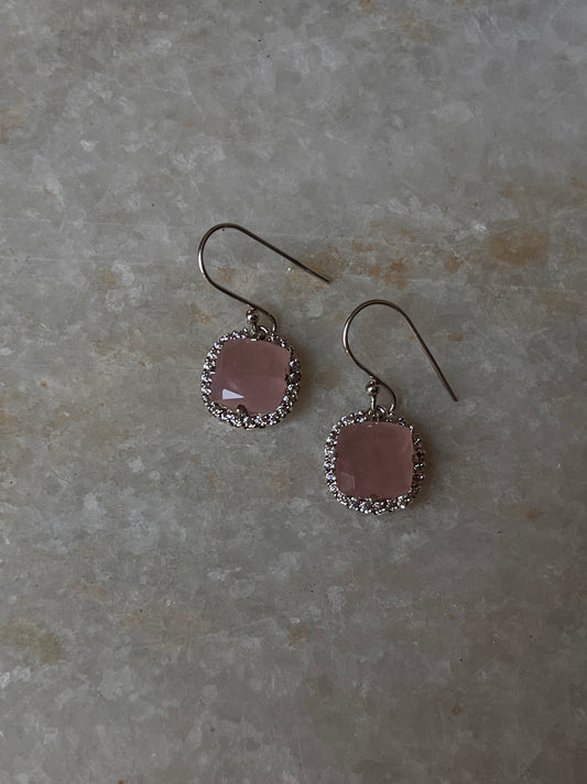 Rose Quartz Cushion Cut Halo Cz 925 Sterling Silver Earrings