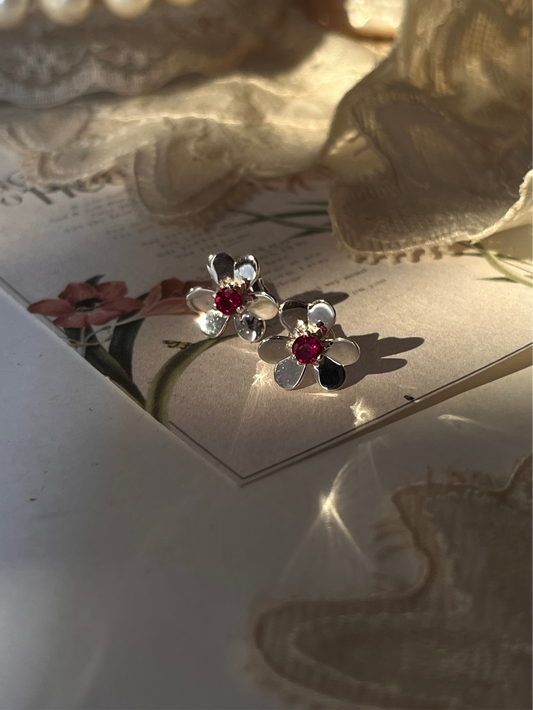 925 Sterling Silver Ruby Lab Grown Flower Studs