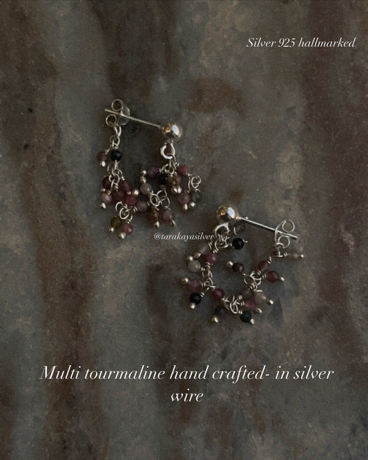 Multi Tourmaline Chain Connector 925 Sterling Silver Single Studs