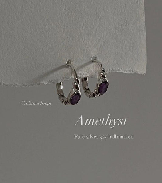 925 sterling silver Amethyst Croissant Huggies/ Hoops Earrings