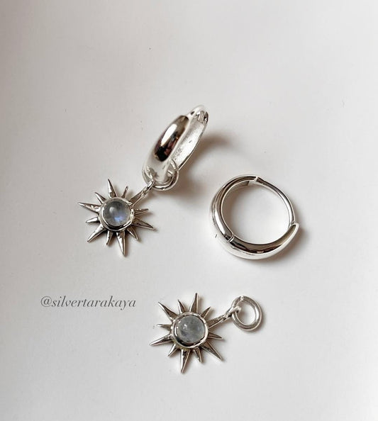 Sunshine Moonstone Plain 925 Sterling Silver Huggies/ Hoops