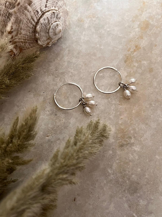 Fresh water Pearls Charm Hoops 925 Sterling Silver Earrings