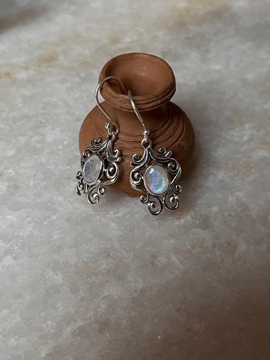 Moonstone Oval Cut Vintage Style 925 Sterling Silver Earrings