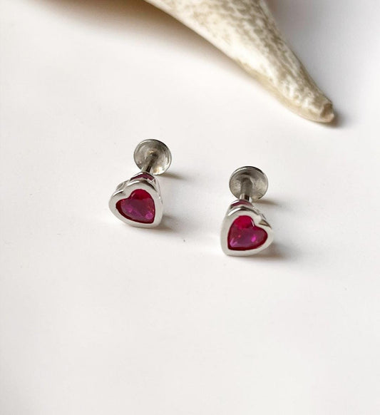 Pink Cz Heart South Screw 5MM Studs 925 Sterling Silver Earrings