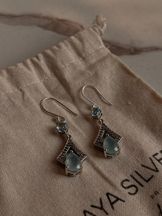 Aqua Chalcedony Pear Cut & Blue Topaz Stone 925 Sterling Silver Earrings