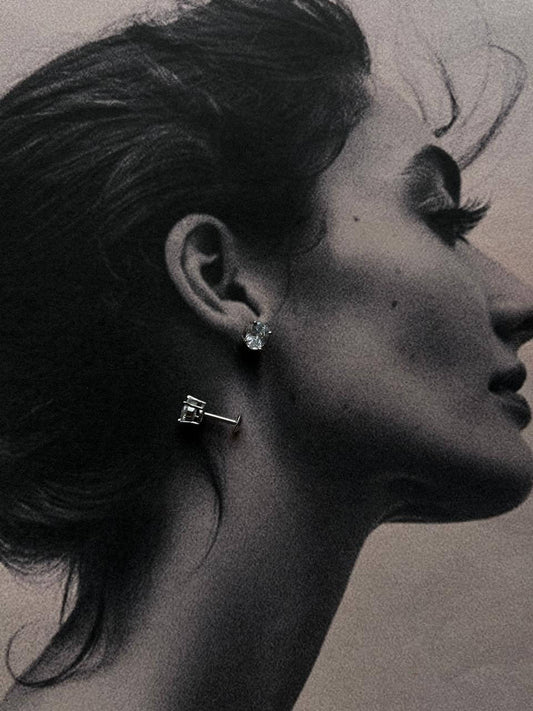 Cz Oval Cut Statement 7MM South Screw Studs 925 Sterling Silver Earrings